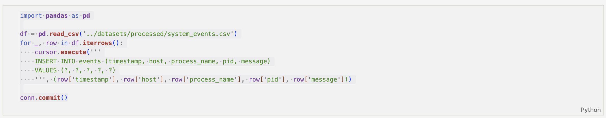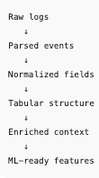 After structuring, timestamps are normalised into a consistent datetime format. This step is essential for correlation across log sources and for time-based feature engineering.